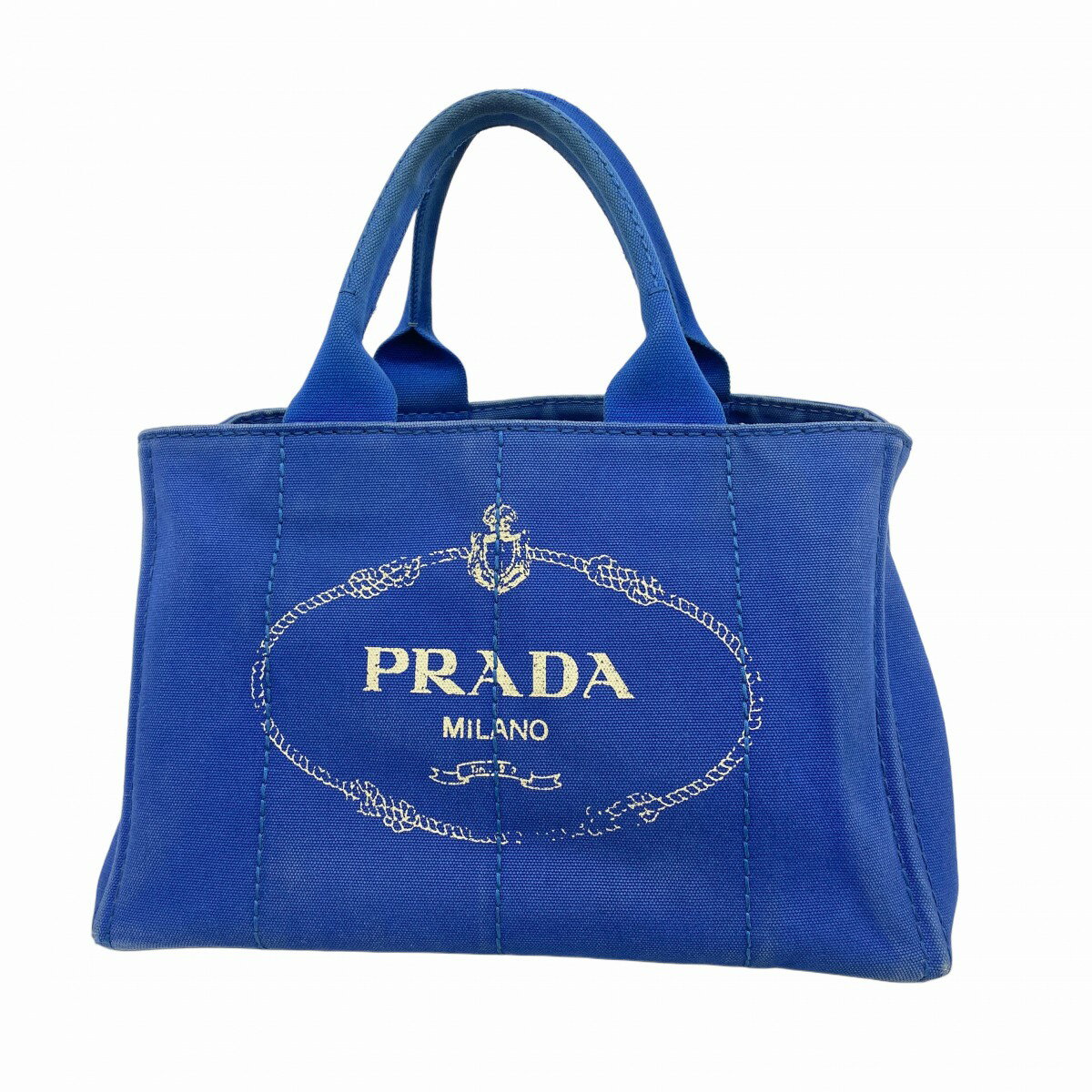 【5oc1837-h】プラダ トートバッグ カナパ キャンバス ブルー ゴールド金具【中古】レディー・・・