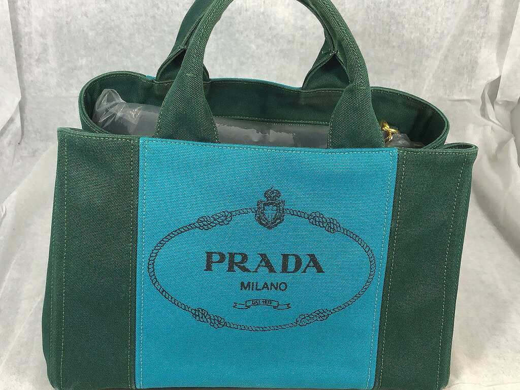 プラダ PRADA カナパ 2WAY キャンバス ショルダーバッグ グリーン BN2642 【中古】