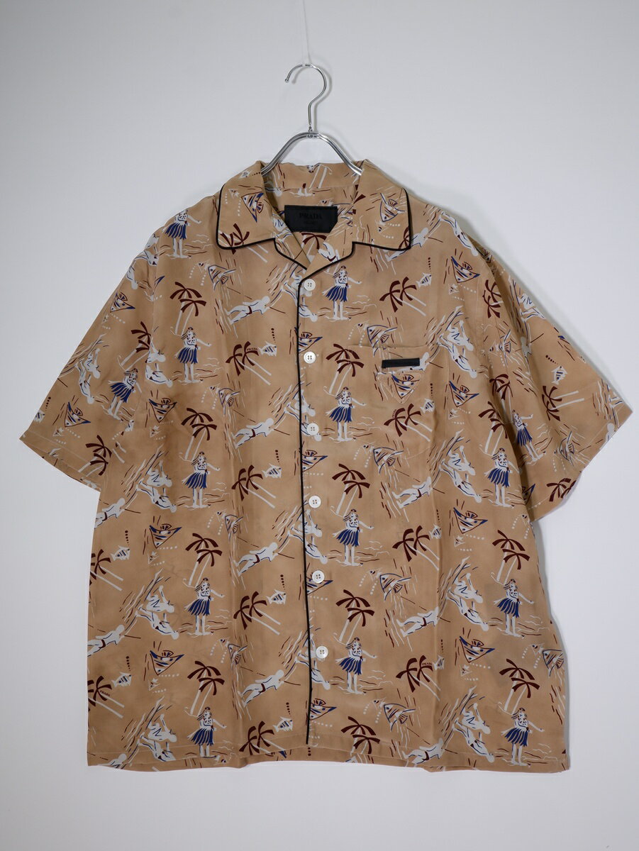 PRADAプラダ 2025 プリントシルクブレンド ボウリングシャツ(半袖)【MSHA80370】【・・・