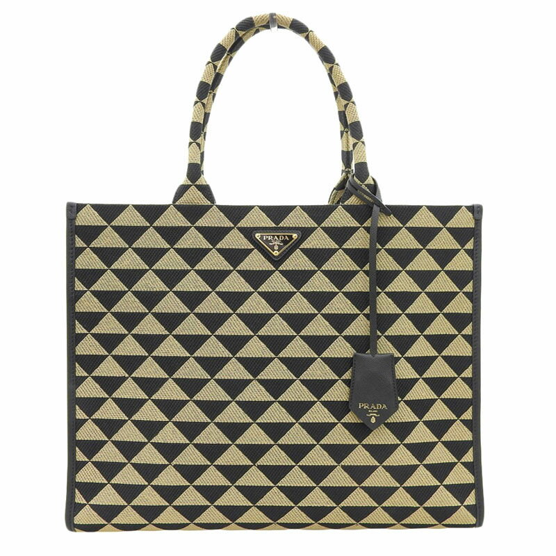 【中古】 プラダ PRADA シンボル エンブロイダリー ラージハンドバッグ トート ファブリック/・・・