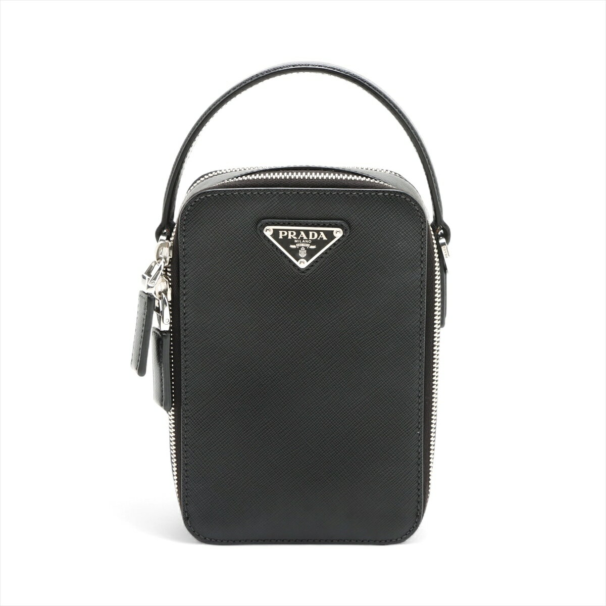 【中古】プラダ サフィアーノトラベル レザー ハンドバッグ ブラック 2VH067