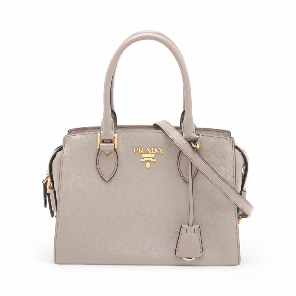 【中古】プラダ サフィアーノ レザー 2WAYハンドバッグ グレー