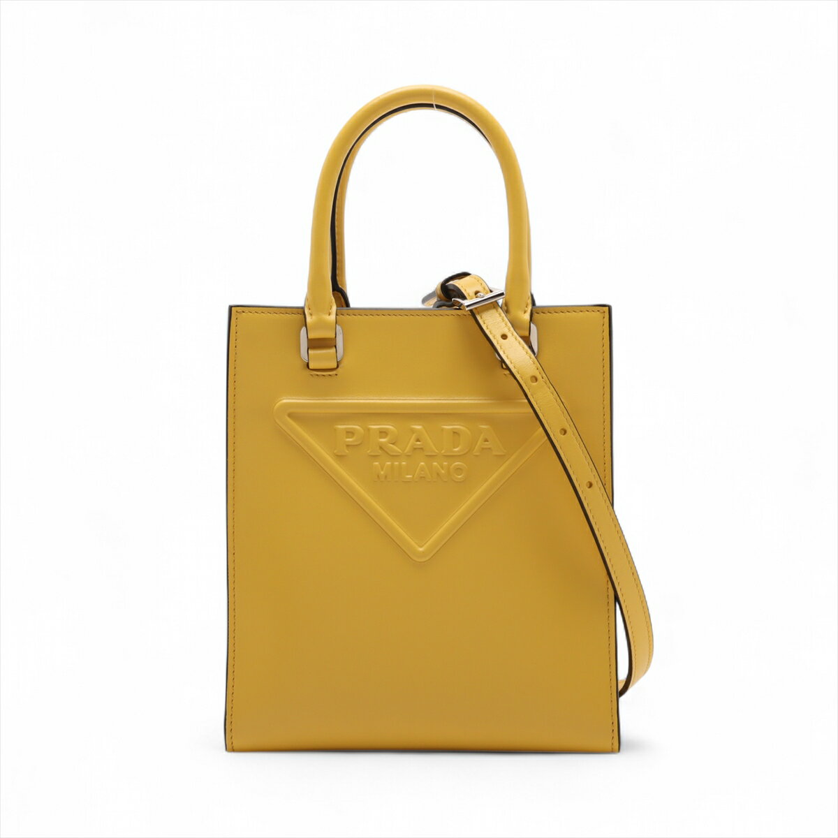 【中古】プラダ サフィアーノ レザー 2WAYハンドバッグ イエロー