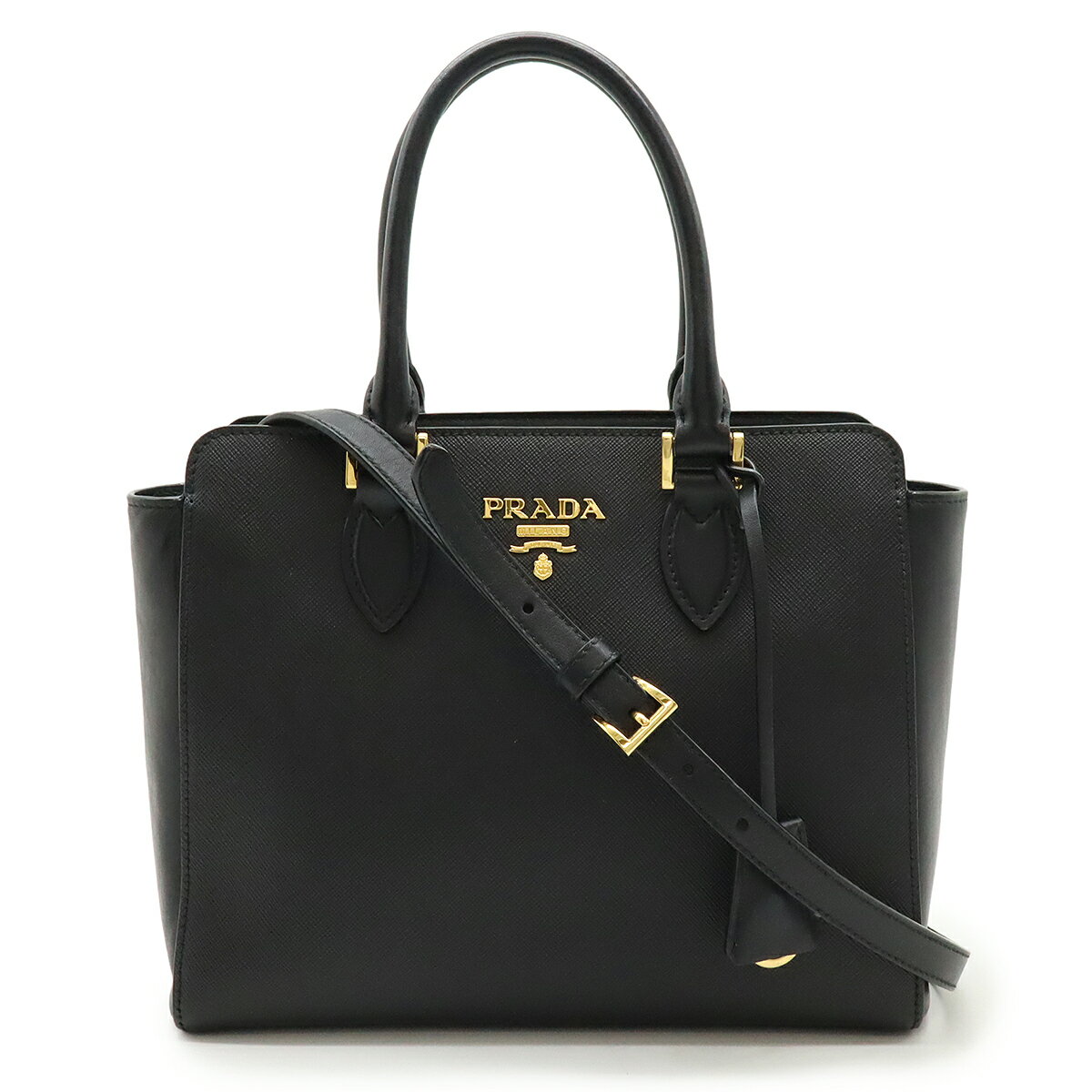 プラダ【PRADA】 モノクローム サフィアーノレザー ハンドバッグ ブラックレザー 1BA269 ・・・