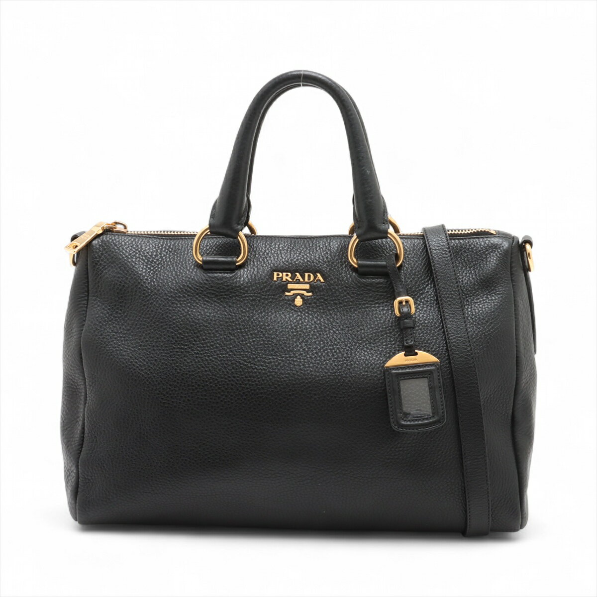【中古】プラダ ヴィッテロダイノ レザー 2WAYハンドバッグ ブラック BL0778