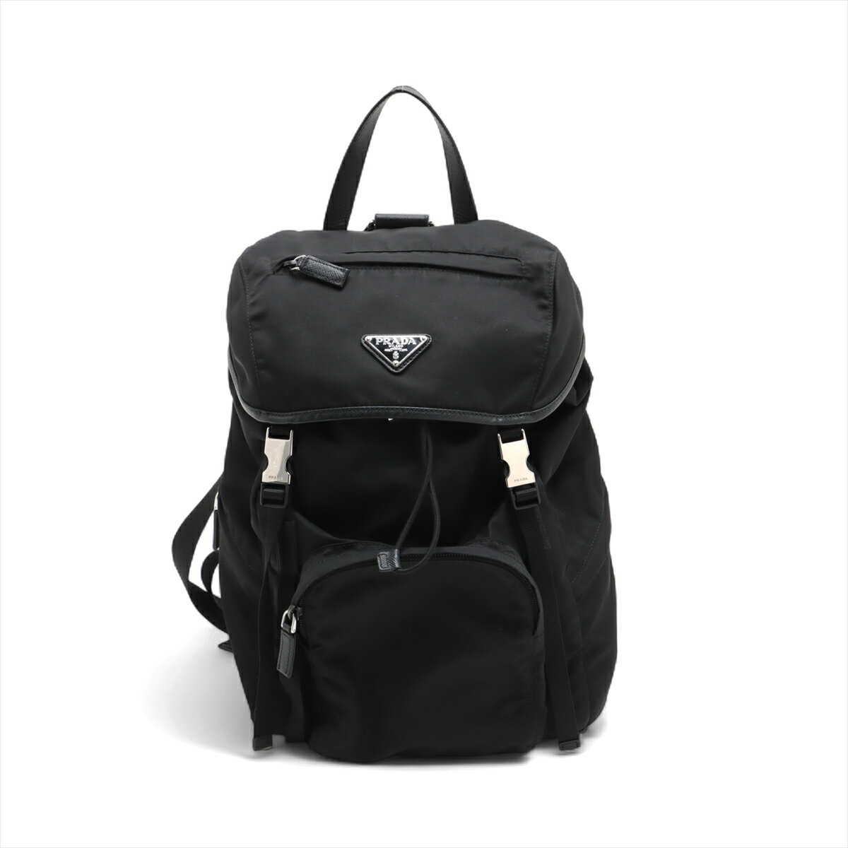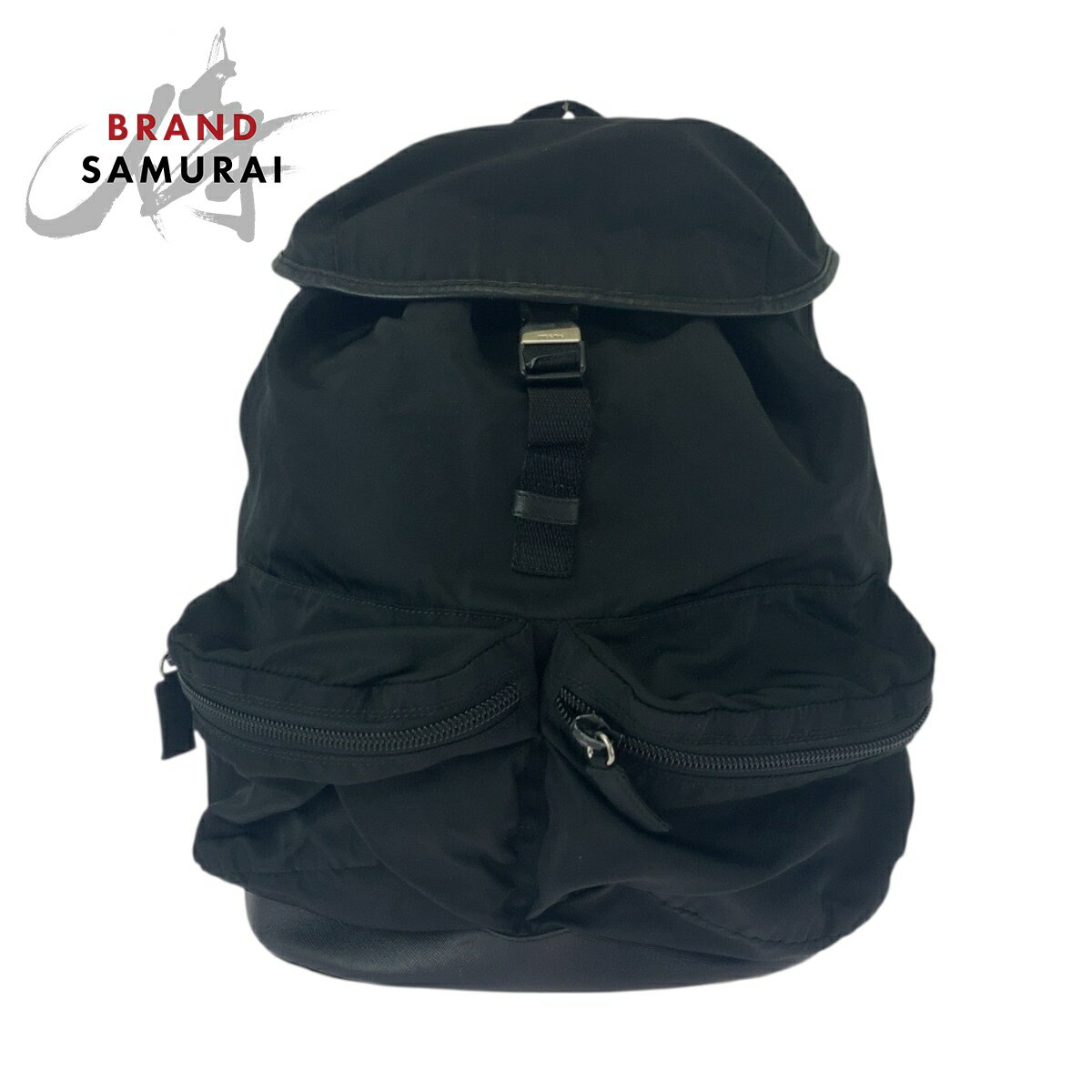 【中古】プラダ テスート ナイロンxレザー バックパック/リュック ブラック
