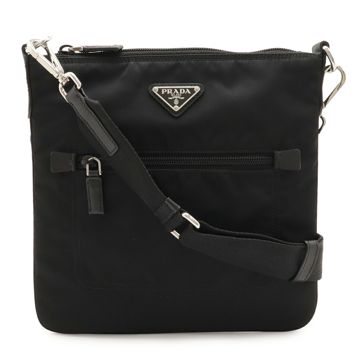 PRADA プラダ トライアングルロゴ ショルダーバッグ 斜め掛け ナイロン レザー NERO 黒 ・・・