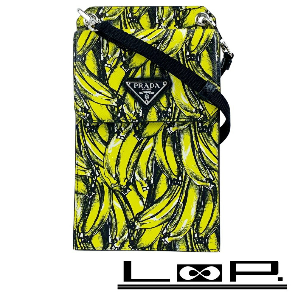 プラダ ■新同■ ショルダー ボディー バッグ スマホケース パスケース バナナ サフィアーノ イエ・・・
