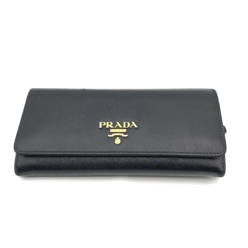 【中古】PRADA サフィアーノロングウォレット 62 B ブラック ▲パスケースなし プラダ[17・・・
