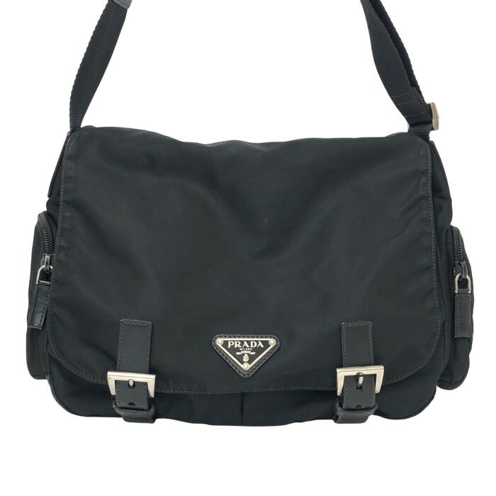PRADA プラダ ダブルサイドポケット ショルダーバッグ ナイロン ブラック【中古】 レディース