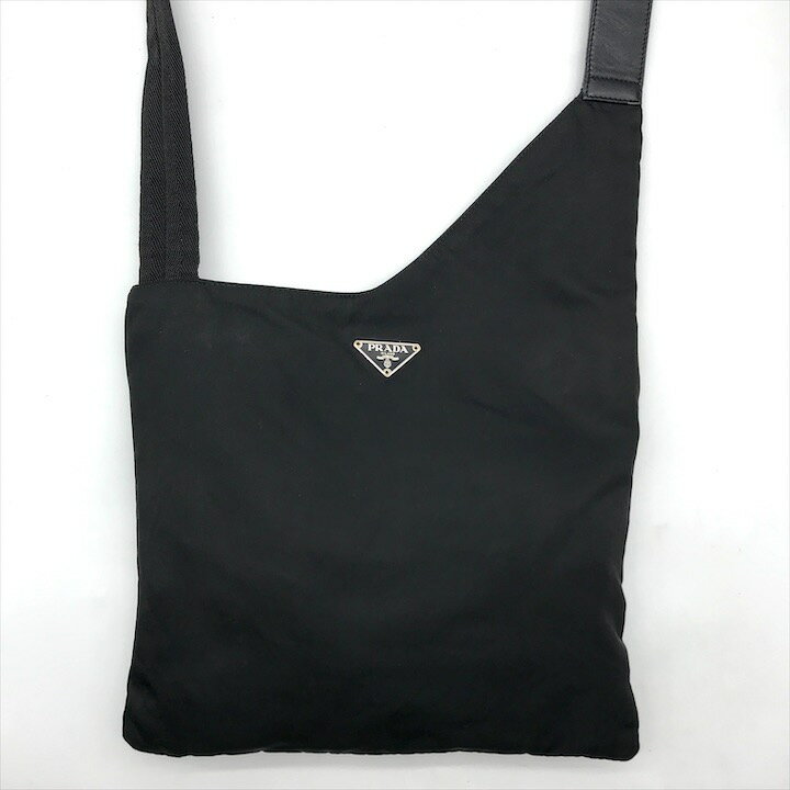 【中古】良品 PRADA プラダ 三角ロゴ ナイロン テスート レザー ショルダー バッグ ブラック・・・