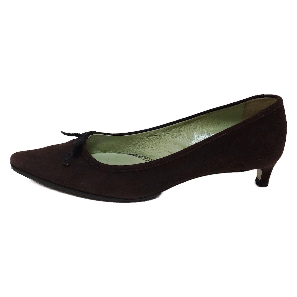 【中古】PRADA(プラダ) パンプス リボン/アウトソール張替済 ダークブラウン×黒