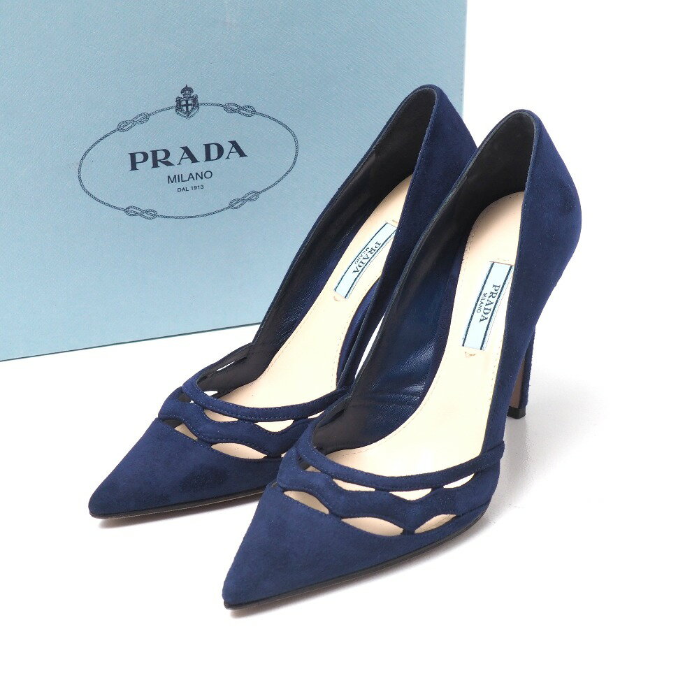 PRADA プラダ パンプス サイズ37 1/2 スエード カットアウト ハイヒール ポインテッドト・・・