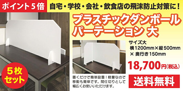 【5枚セット】感染防止 プラスチックダンボールパーテーション (サイズ:W1200mm×H500奥行・・・