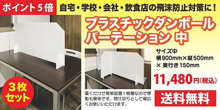 【3枚セット】感染防止 プラスチックダンボールパーテーション (サイズ:W900mm×H500奥行き・・・