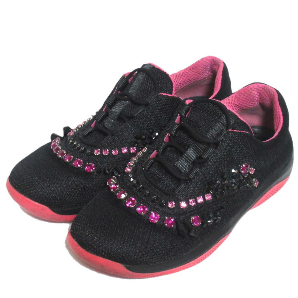 【中古】良品 PRADA プラダ ビジュー装飾 メッシュ スニーカー シューズ サイズ37.5 約2・・・
