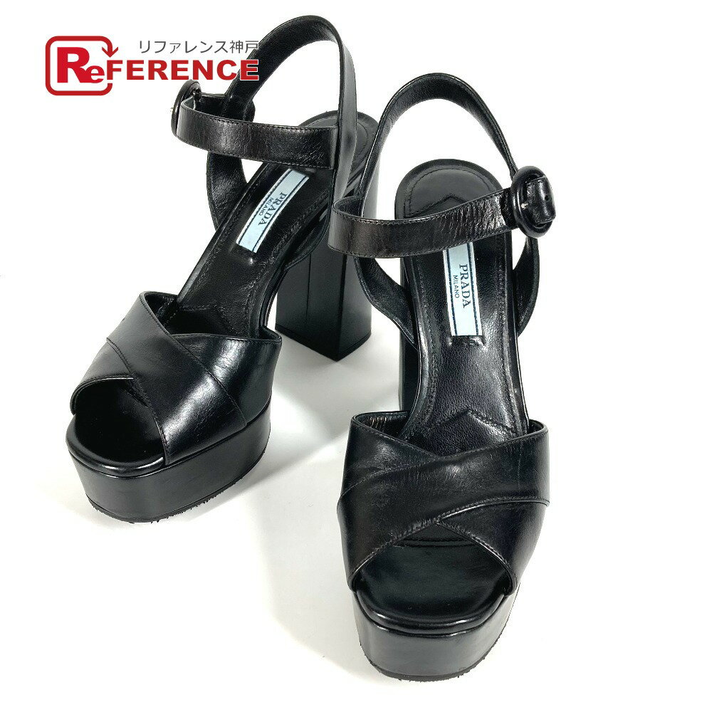 PRADA プラダ ベルト オープントゥ ヒール 靴 シューズ サンダル レザー レディース ブラッ・・・