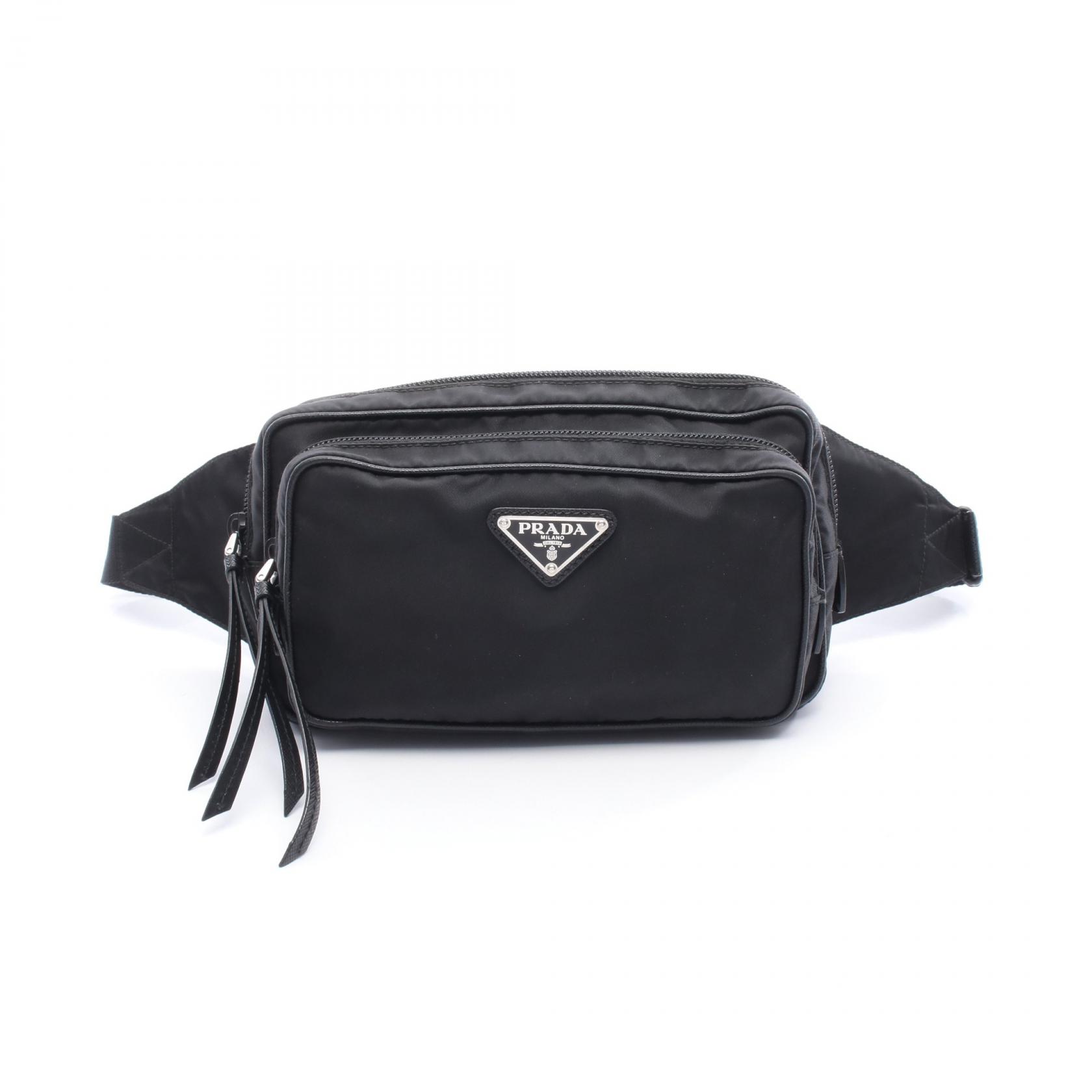 プラダ PRADA トライアングルロゴ ウエストバッグ バッグ ナイロン レザー ブラック系 【中古・・・