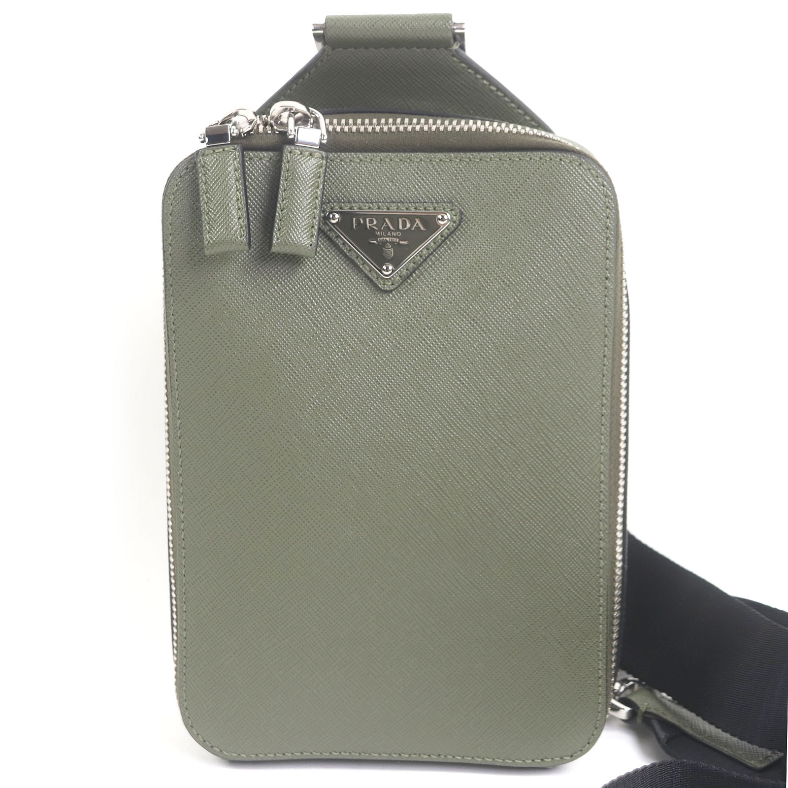 極美品□PRADA プラダ 2VZ106 サフィアーノレザー ブリック トライアングルロゴ ワンショ・・・
