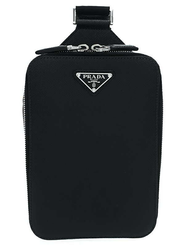 【中古美品】PRADA プラダ ボディバッグ 2VL977 ベルトバッグ メンズ ブラック