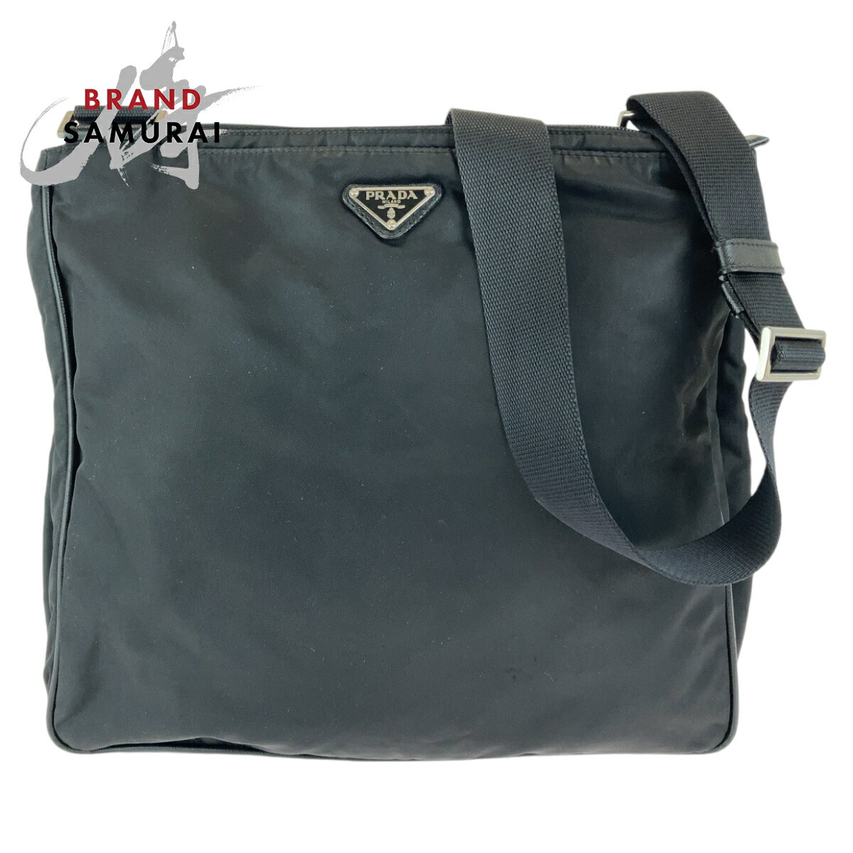 美品 PRADA プラダ テスート 三角ロゴプレート ブラック 黒 ナイロン ショルダーバッグ メッ・・・
