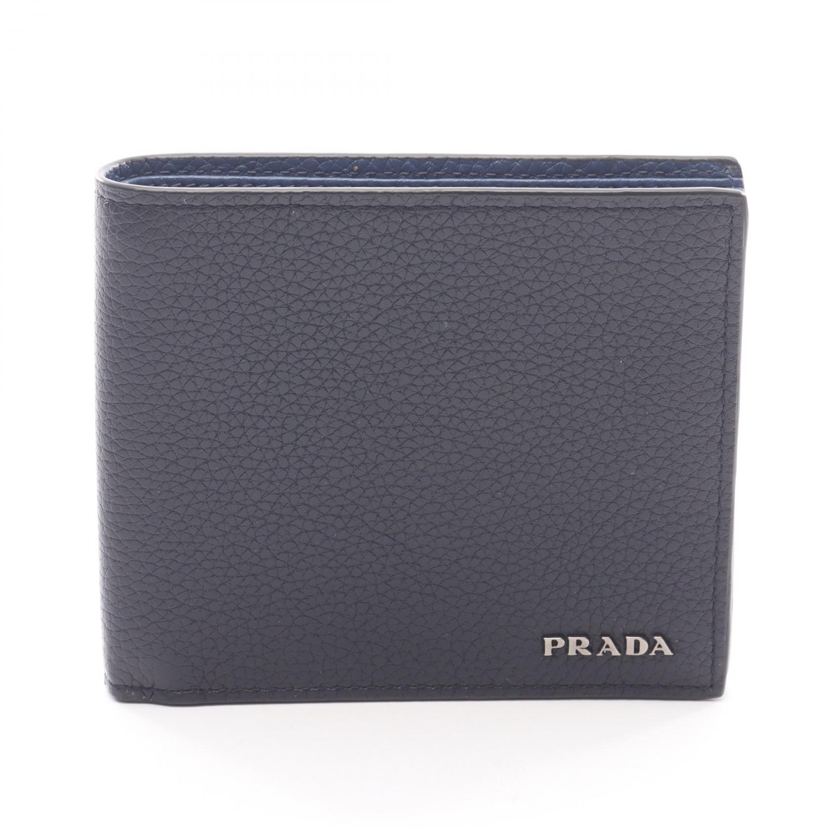PRADA プラダ 二つ折り財布 カード 札入れ メンズ ブラック 【中古】