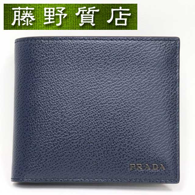 (美品)プラダ PRADA 二つ折り財布 レザー ネイビー 黒 マットシルバー金具 2MO738 プ・・・