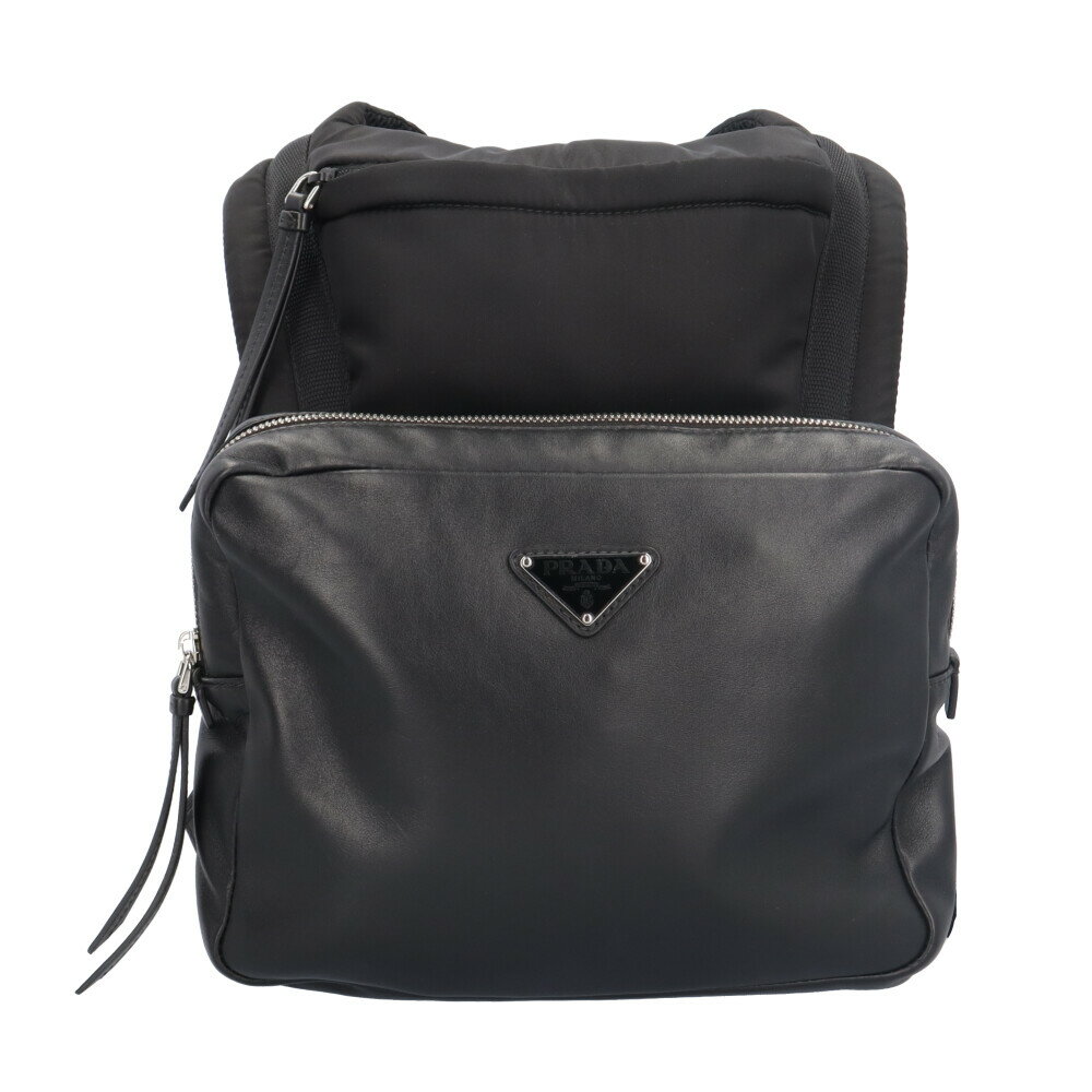 PRADA プラダ バックパック リュックサック ナイロン サフィアーノレザー 三角プレート ブラッ・・・