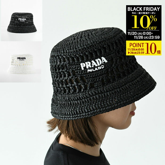 【10%OFFクーポン&P10倍】PRADA プラダ バケットハット 帽子 バケハ ウーブンファブリ・・・