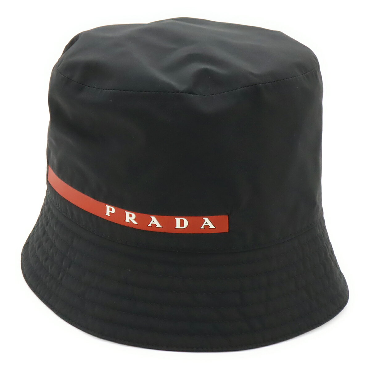 PRADA プラダ プラダスポーツ バケットハット 帽子 ラバーロゴ ポリエステル100% ブラック・・・