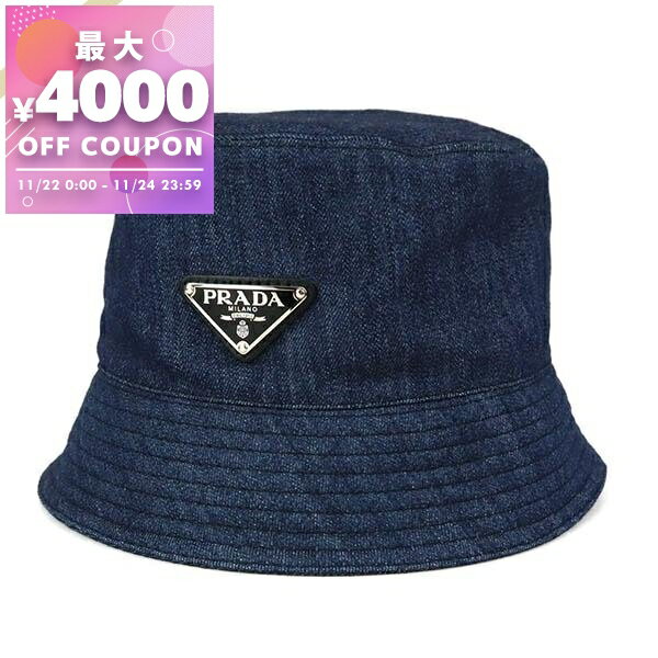 プラダ PRADA 帽子 レディース メンズ 三角ロゴ バケットハット デニム Mサイズ ネイビー ・・・