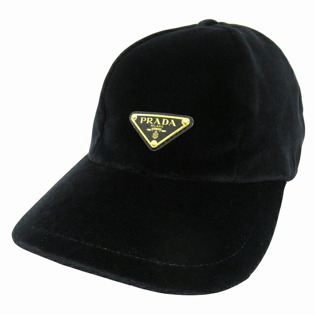 【中古】極美品 プラダ PRADA "ベルベット ベースボール キャップ" 帽子 トライアングルロゴ・・・