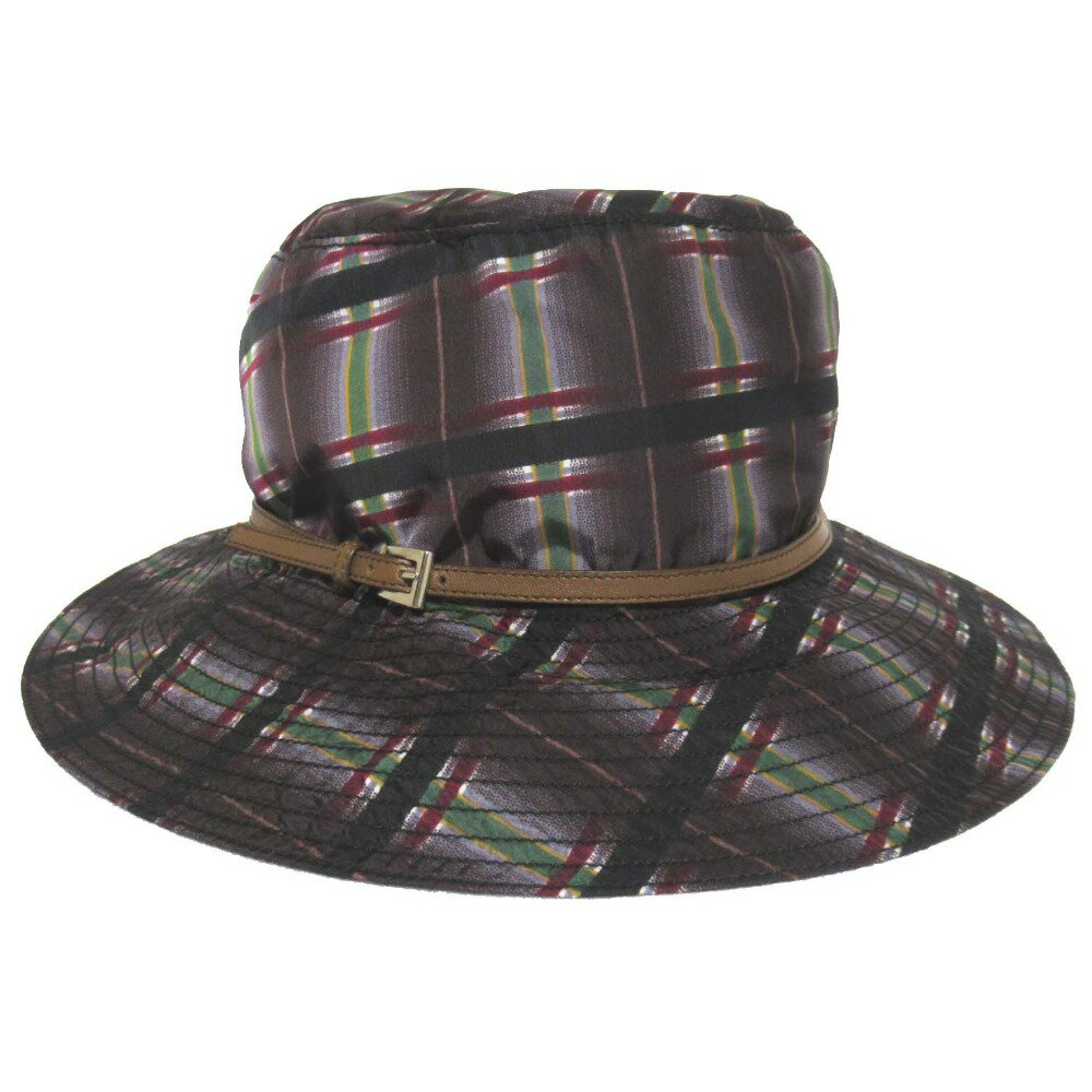 【中古】美品 PRADA プラダ チェック柄 ナイロン バケットハット 帽子 Mサイズ パープル系 ・・・