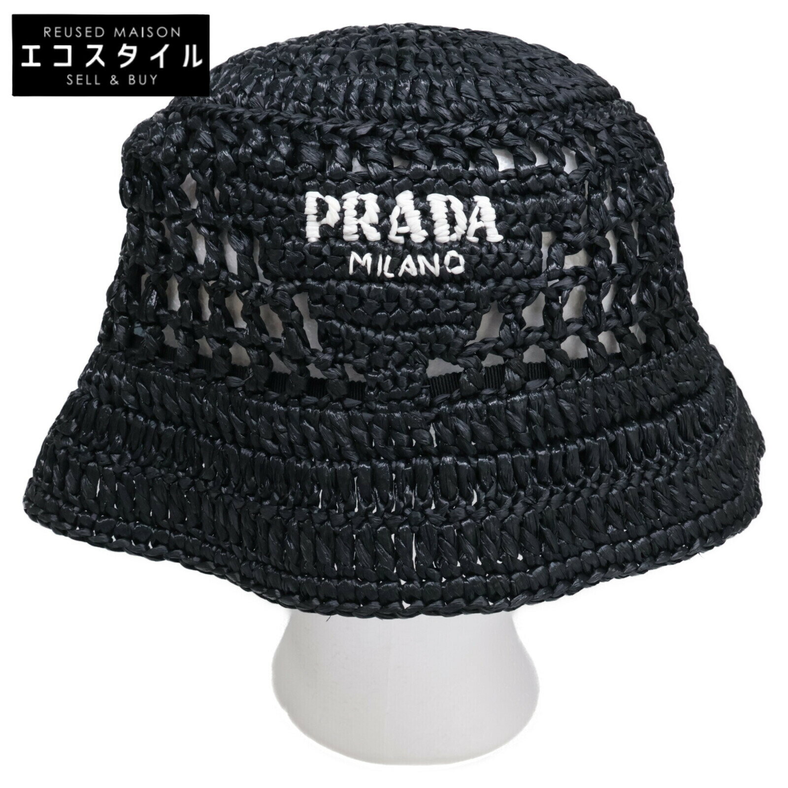 プラダ 帽子 メンズ レディース ハット アウトレット S ブラック TESSUTO LOGO RI・・・