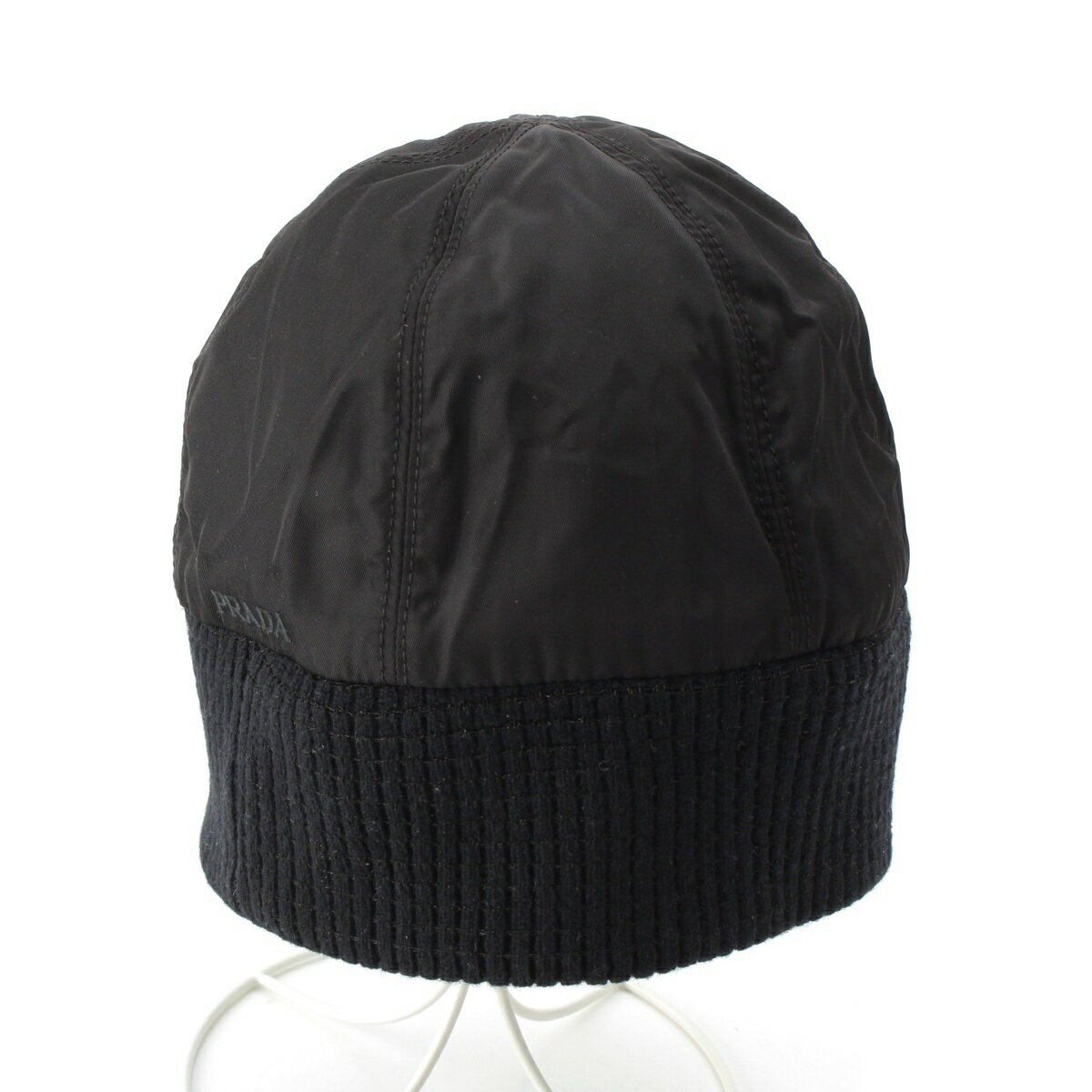 プラダ PRADA ウール カシミヤ ナイロン 切り替え ニットキャップ 帽子 ブラック S【中古】・・・