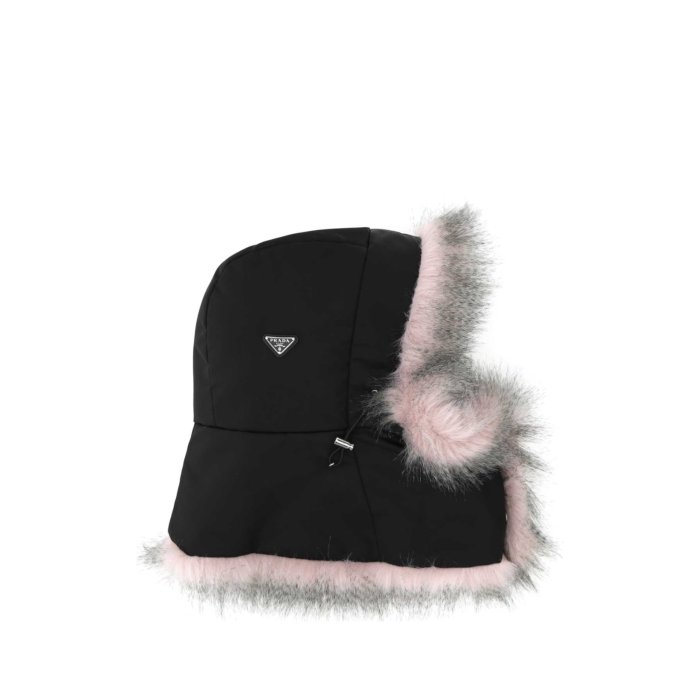 プラダ PRADA トライアングルロゴ ハット 帽子 ファー レディース ベージュ系 1HC137 ・・・