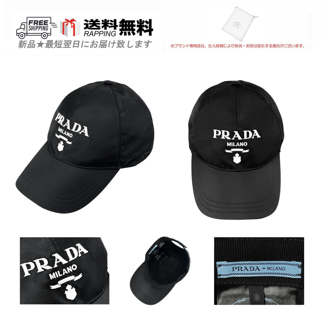 PRADA プラダ ベースボール キャップ 帽子 刺繍 RE-NTLON ロゴ イタリア製 新品 ★・・・