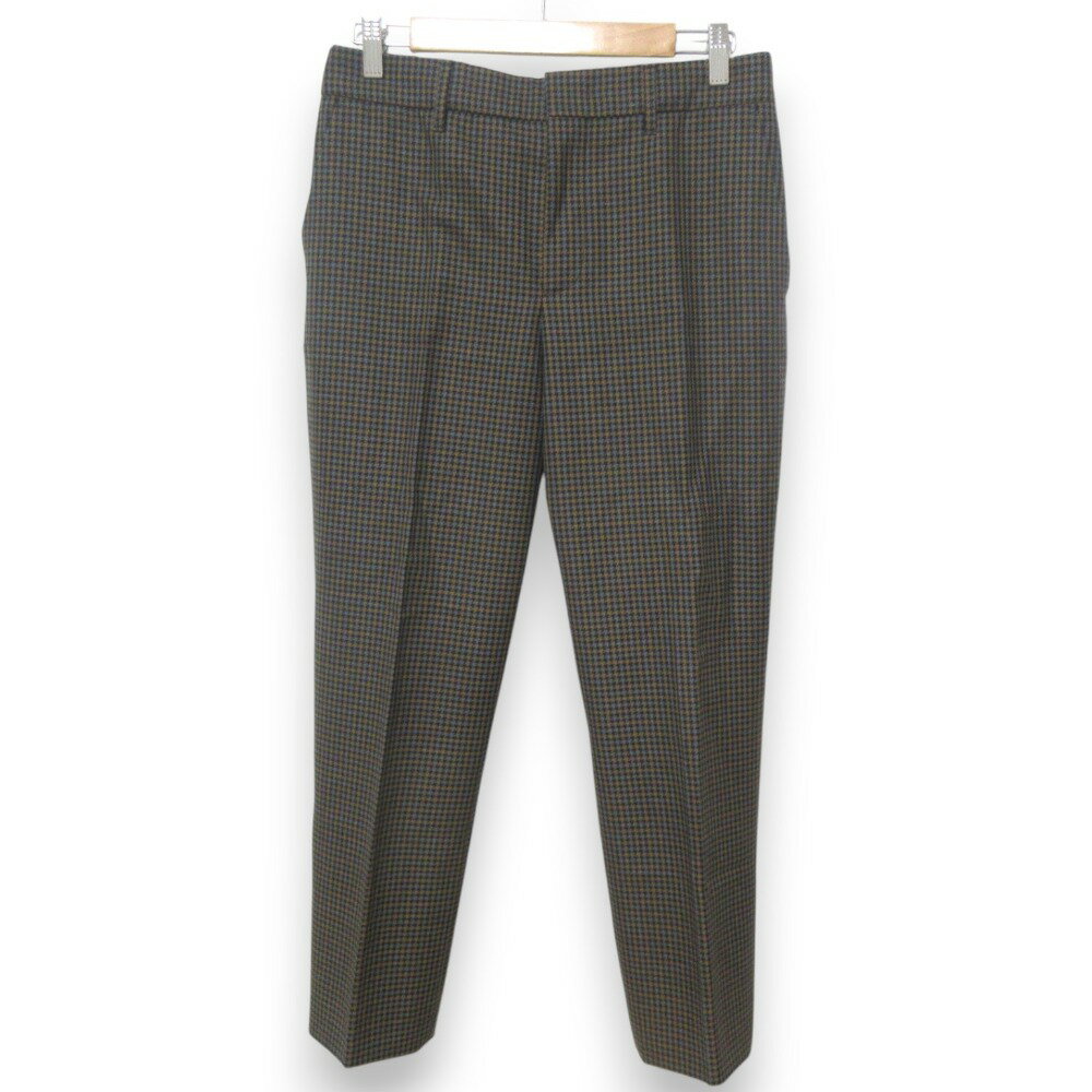 【中古】美品 PRADA プラダ ウール×モヘア 千鳥格子柄 センタープレス テーパードパンツ スラ・・・