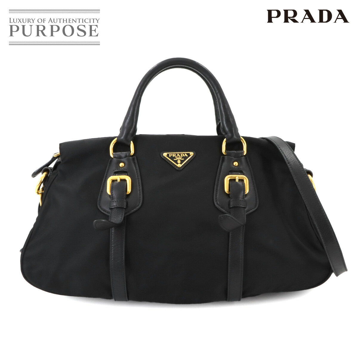 【美品】 プラダ PRADA 2way ハンド ショルダー バッグ ナイロン レザー ネロ ブラック・・・