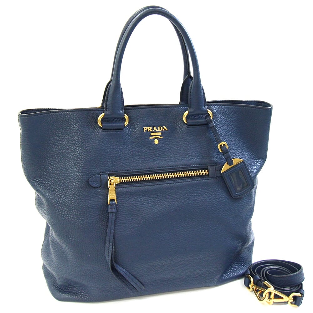 プラダ 2WAYトートバッグ BN2754 ブルー レザー 中古 ショルダー 肩掛け 斜め掛け ロゴ・・・