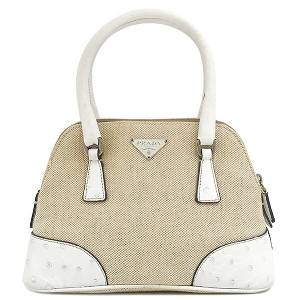 プラダ 2WAYバッグ キャンバス オーストリッチ キャンバス ベージュ 三角ロゴプレート ミニ シ・・・