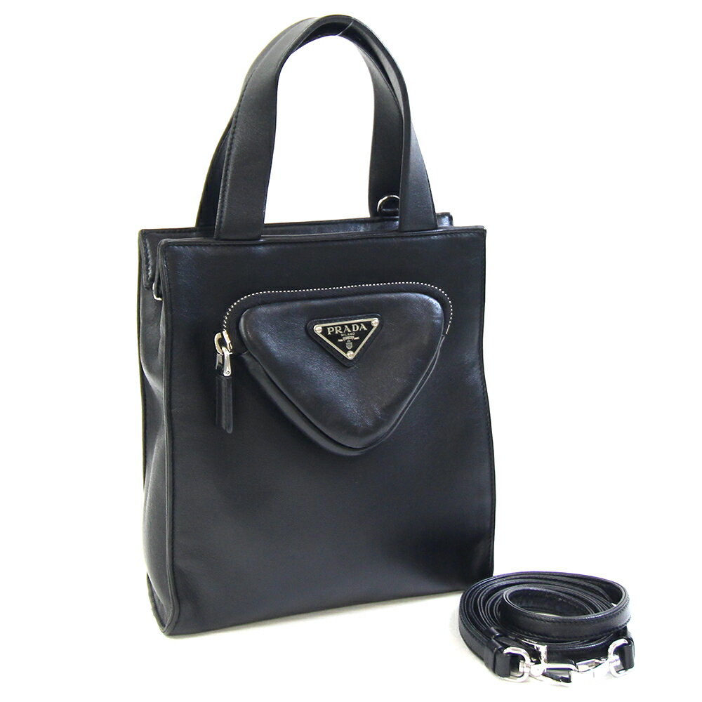 プラダ 2WAYハンドバッグ 1BG418 ブラック レザー 中古 斜め掛け クロスボディ トライア・・・