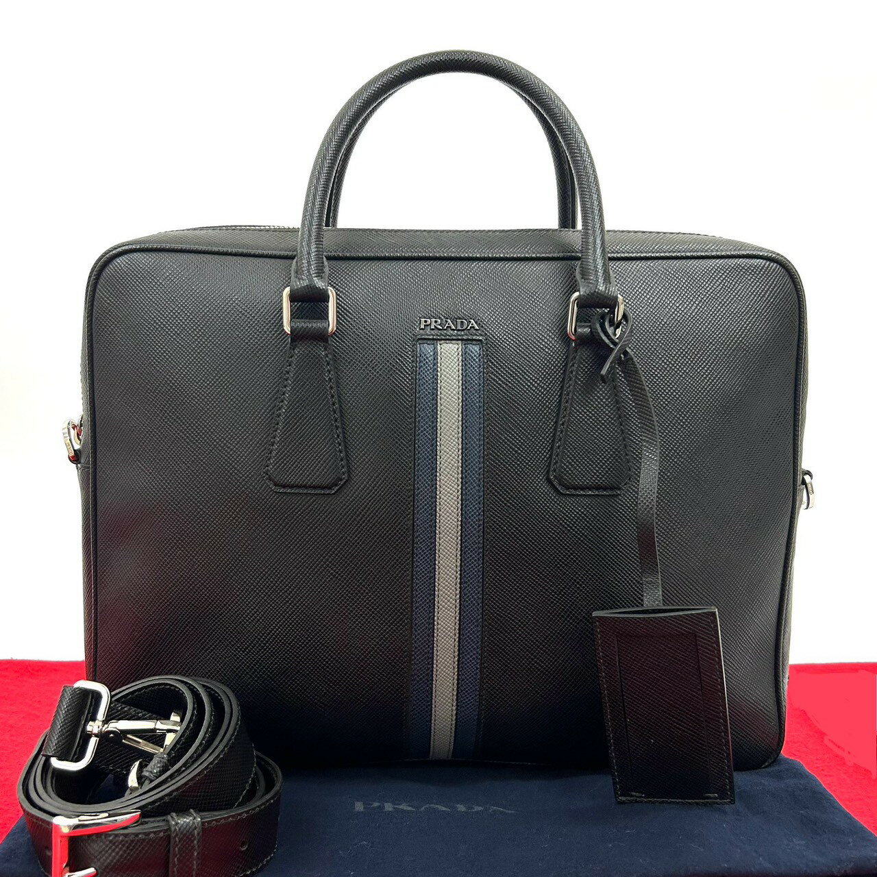 【ポイント2倍】極 美品 袋付き PRADA プラダ ロゴ 金具 サフィアーノ レザー 本革 2wa・・・
