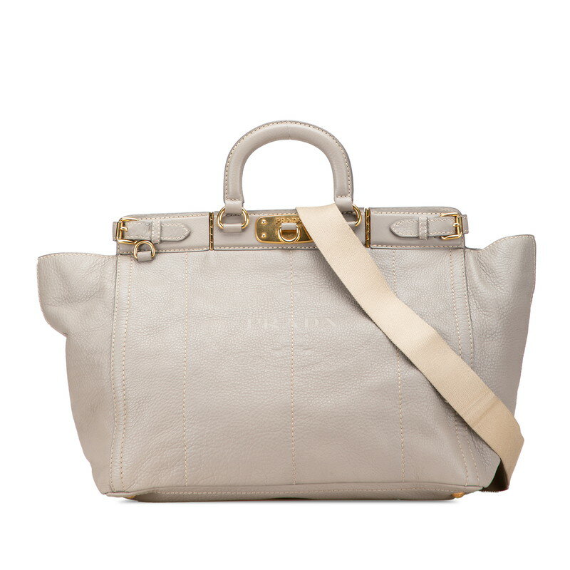 プラダ ロゴ ハンドバッグ ショルダーバッグ 2WAY グレー レザー レディース PRADA 【中・・・