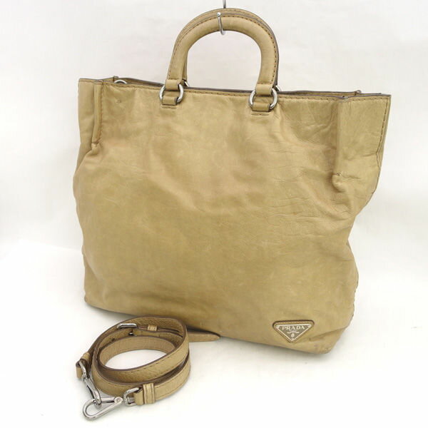 PRADA / プラダ ■カーフレザー ハンドバッグ 2WAY ショルダー ベージュ メタルロゴ 【・・・
