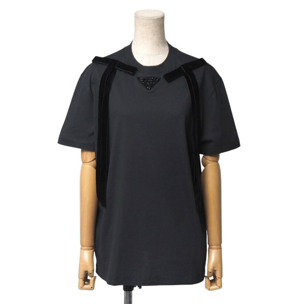 ■美品■2024年製■PRADA プラダ 半袖Tシャツ サイズXS トライアングルロゴ ビーズ装飾 ・・・