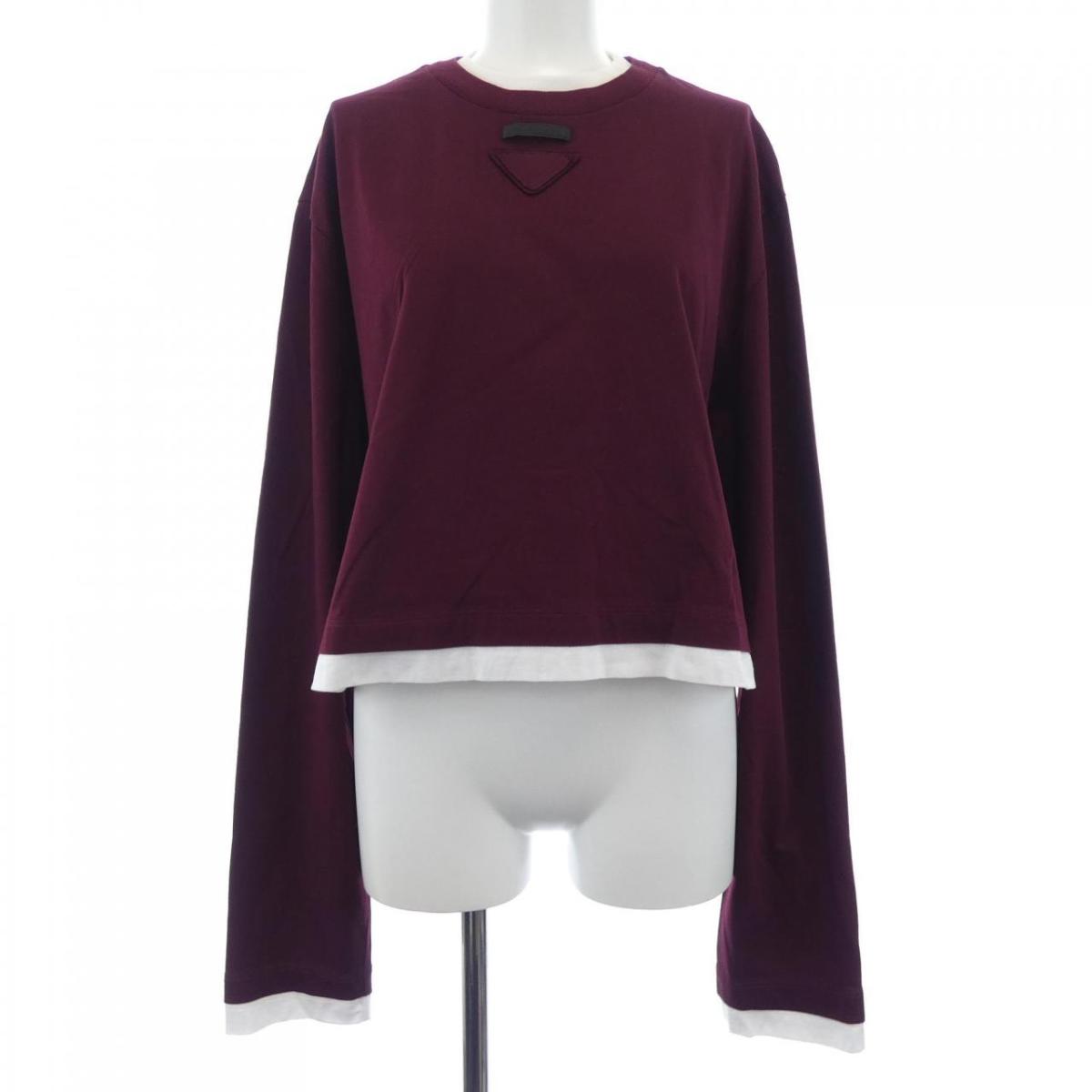 【中古】美品 22SS PRADA プラダ 長袖 トライアングルロゴ ショート丈 Tシャツ カットソ・・・