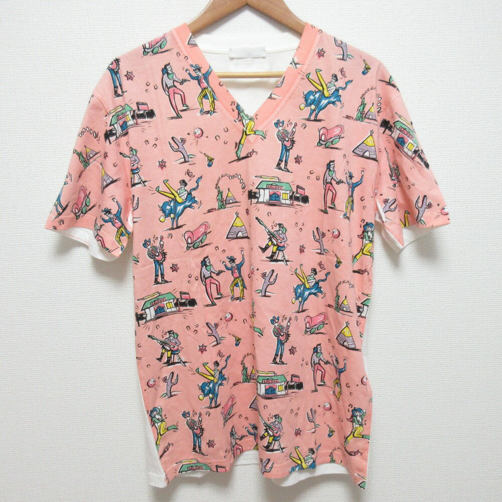 【中古】良品 PRADA プラダ サルーンプリント 切替 Vネック ショートスリーブ Tシャツ カッ・・・