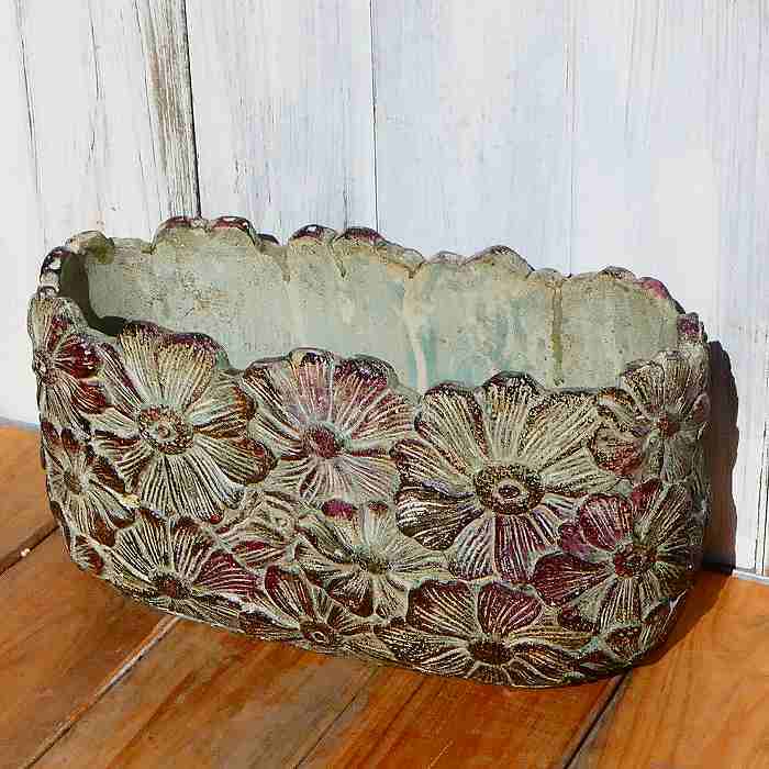 鉢 ペタルポット 幅27cm PP-6 プランター テラコッタ フラワー 花模様 レリーフ アンティ・・・