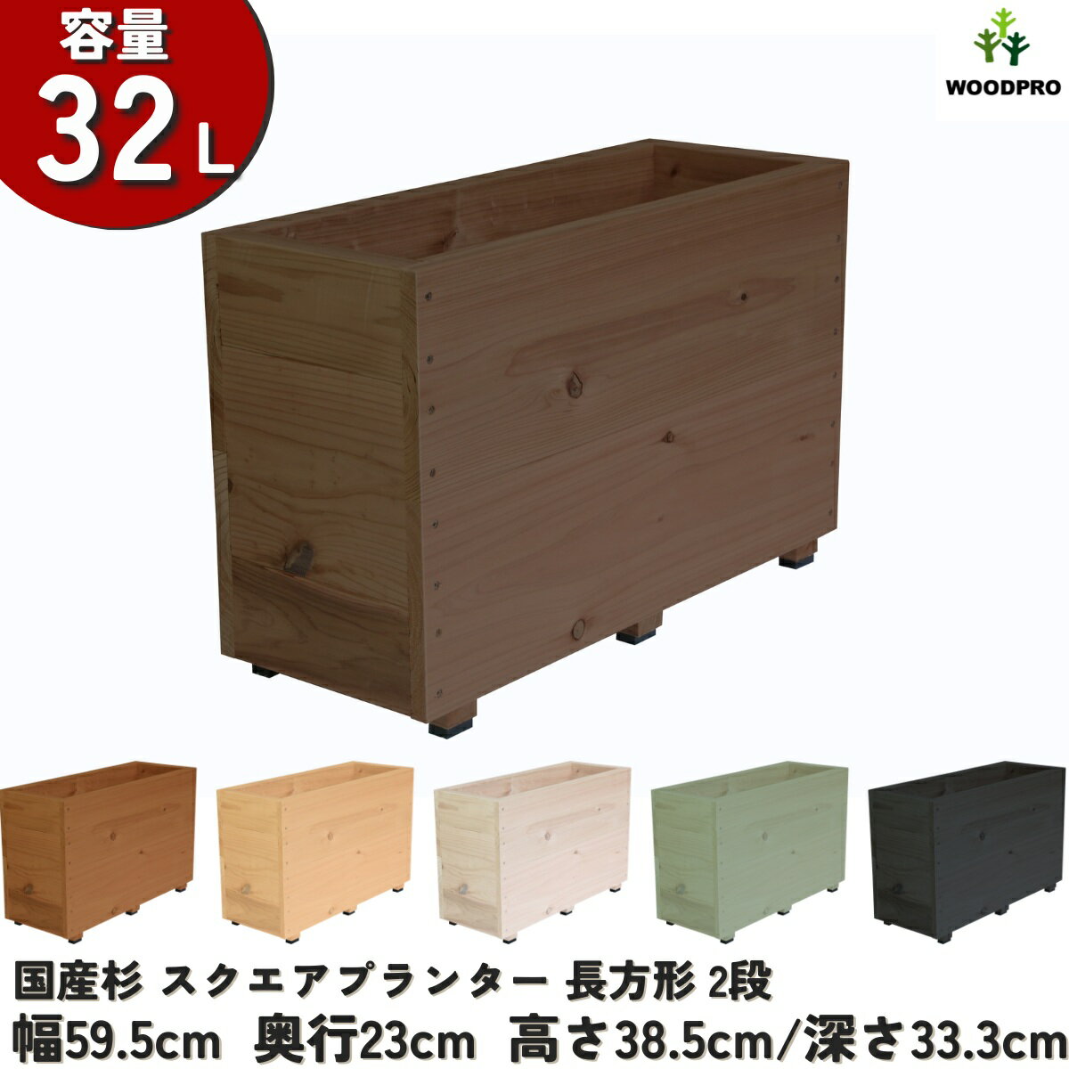 スクエア プランター 長方形(2段)幅59.5cm×奥行23cm×高さ38.5cm/深さ33.3cm・・・
